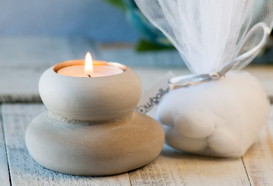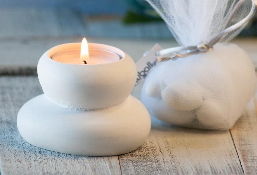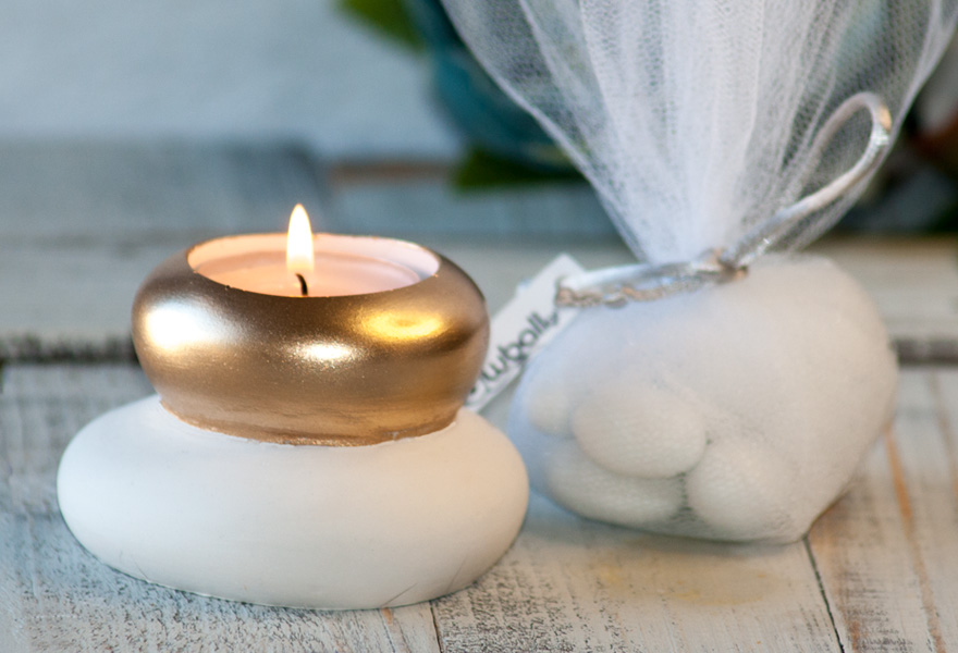 Διακοσμητική βάση για κερί σε σχήμα διπλού βότσαλου για μπομπονιέρες, δώρα.