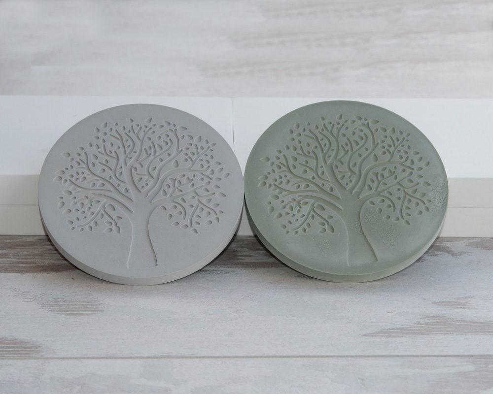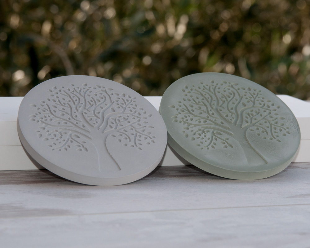 Διακοσμητικό στρογγυλο πλακάκι με ανάγλυφο το δέντρο της ζωής, για μπομπονιέρες και δώρα.